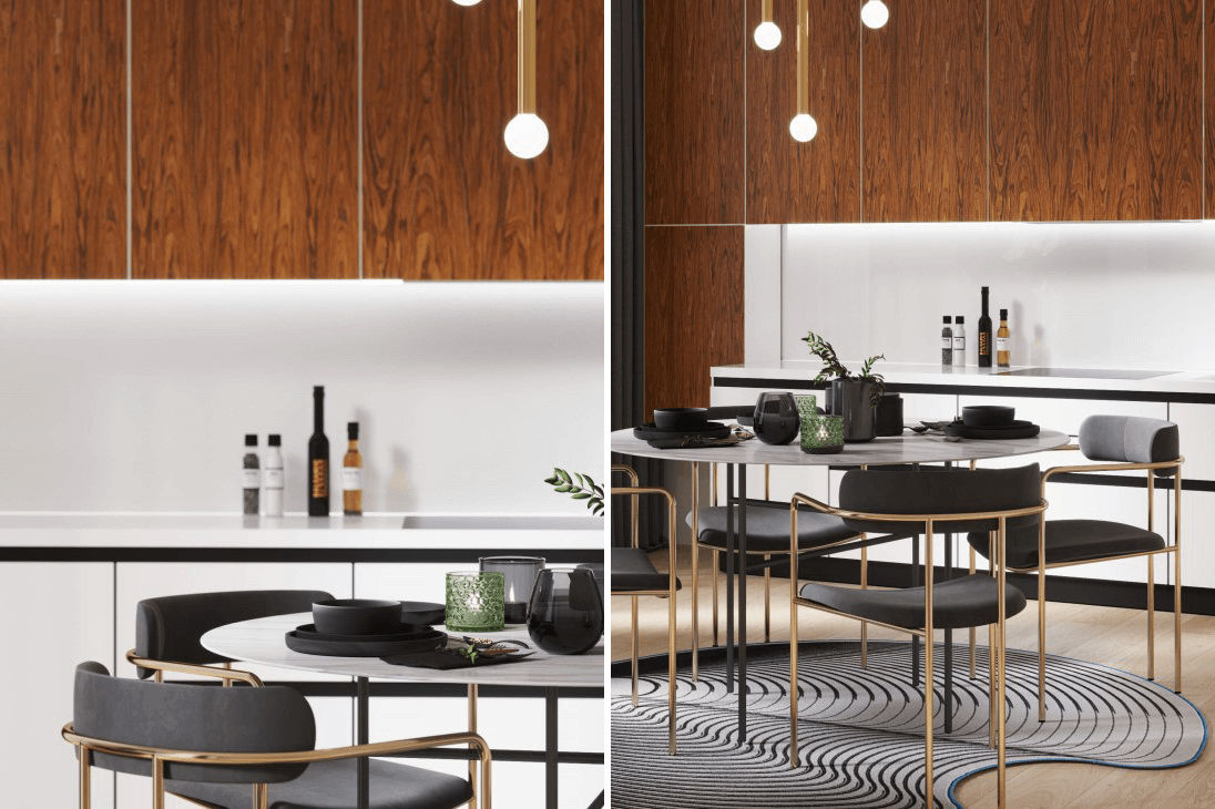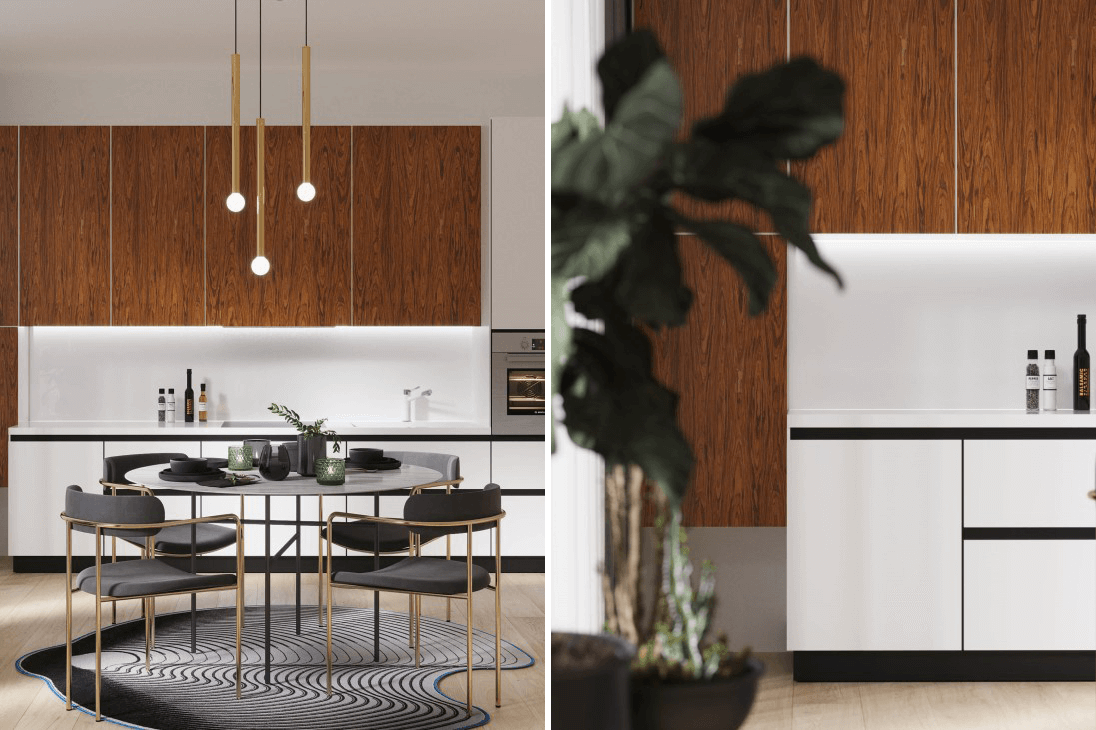 Create exceptional beauty in the middle of everyday life! Thanks to the dynamics of the lines, we convey the unique beauty of natural facades created from fine-line veneer ROSEWOOD SANTOS.The living material of the modified veneer from Classic Veneer and clean lines create the mood of the whole interior.