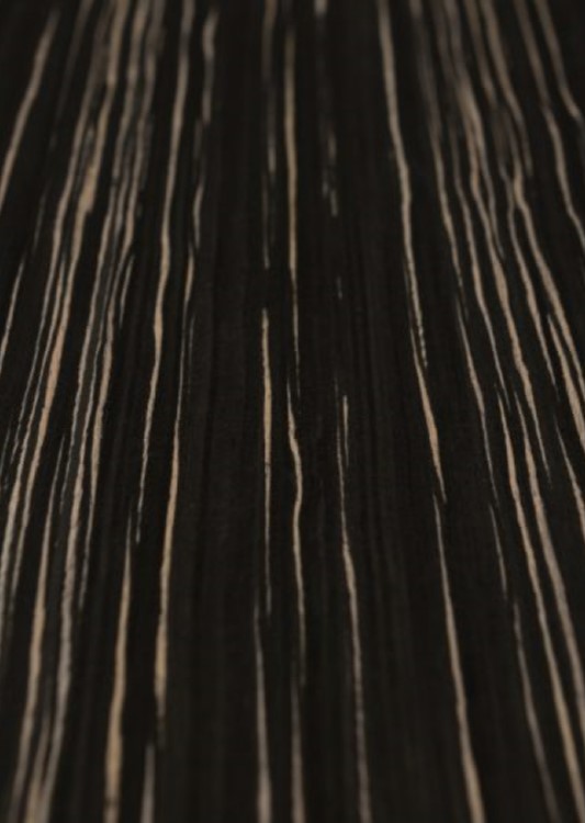 Качественным отличием модифицированного шпона является то, что он может совсем не повторять ни одну из настоящих пород древесины, так и полностью имитировать любую породу дерева, имеет четко выраженную структуру, рисунок и цвет. Рисунок и структура шпона ЗЕБРАНО ЧЕРНОГО является равномерной и повторяемой, что крайне важно при серийном производстве.