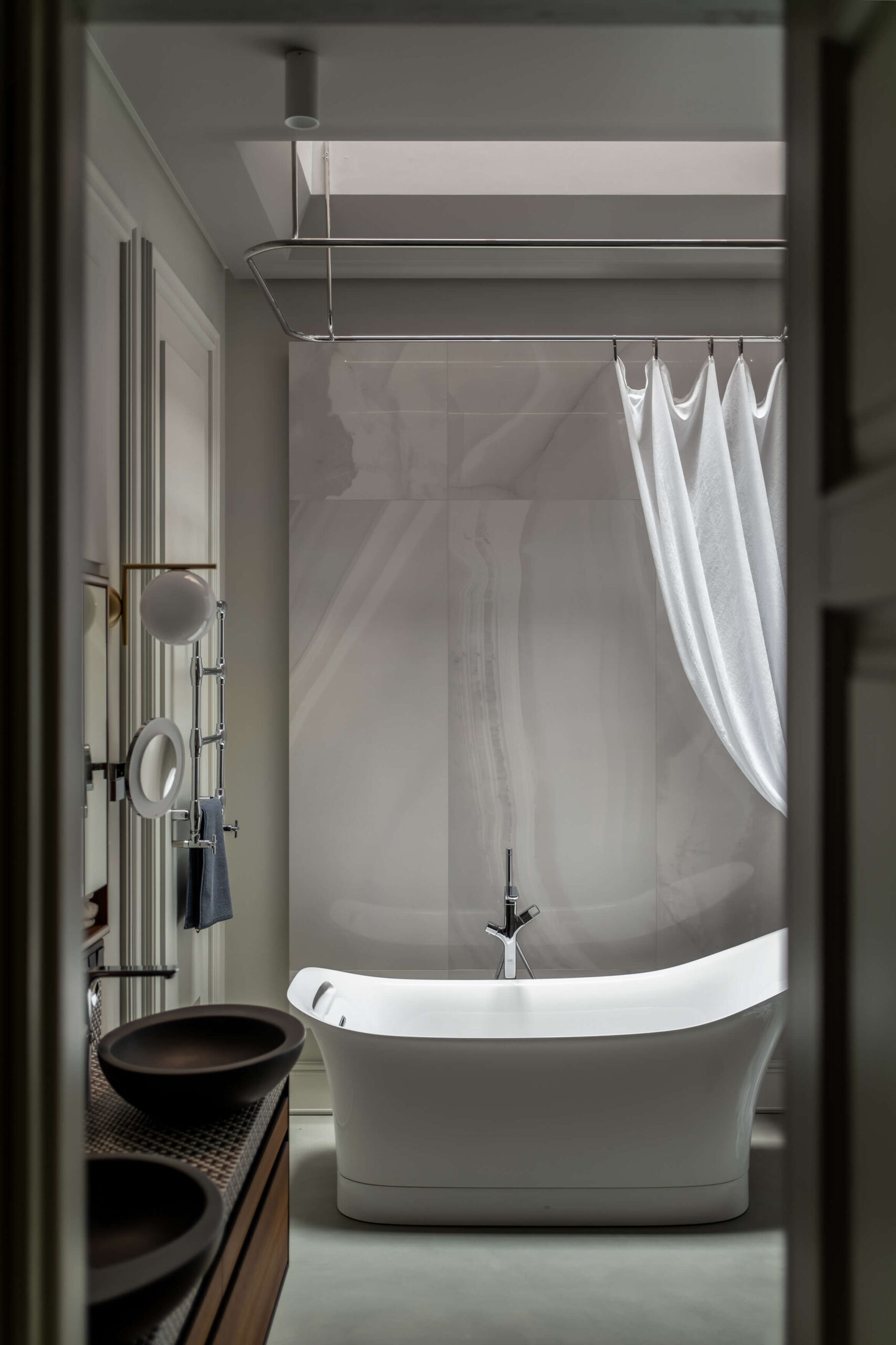ПопереднійРеалізований проєкт від студії дизайну та архітектури Replus bureau, в якому поєднали класичні форми з сучасним технологічним наповненням. Представляємо сучасний санвузол, де в стилістиці сірих тональностей дизайн чудово доповнює шпон – ДУБ ТЕРМОВАНИЙ.