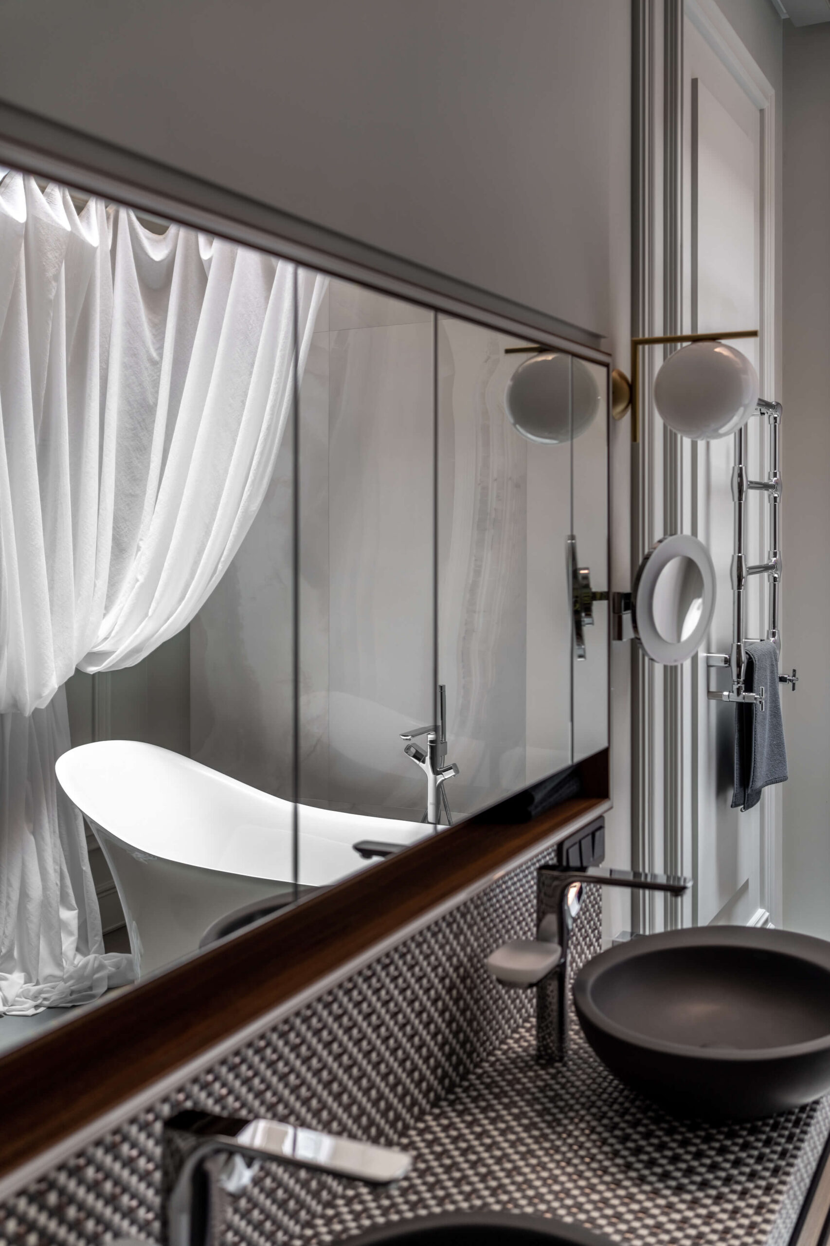 ПопереднійРеалізований проєкт від студії дизайну та архітектури Replus bureau, в якому поєднали класичні форми з сучасним технологічним наповненням. Представляємо сучасний санвузол, де в стилістиці сірих тональностей дизайн чудово доповнює шпон – ДУБ ТЕРМОВАНИЙ.