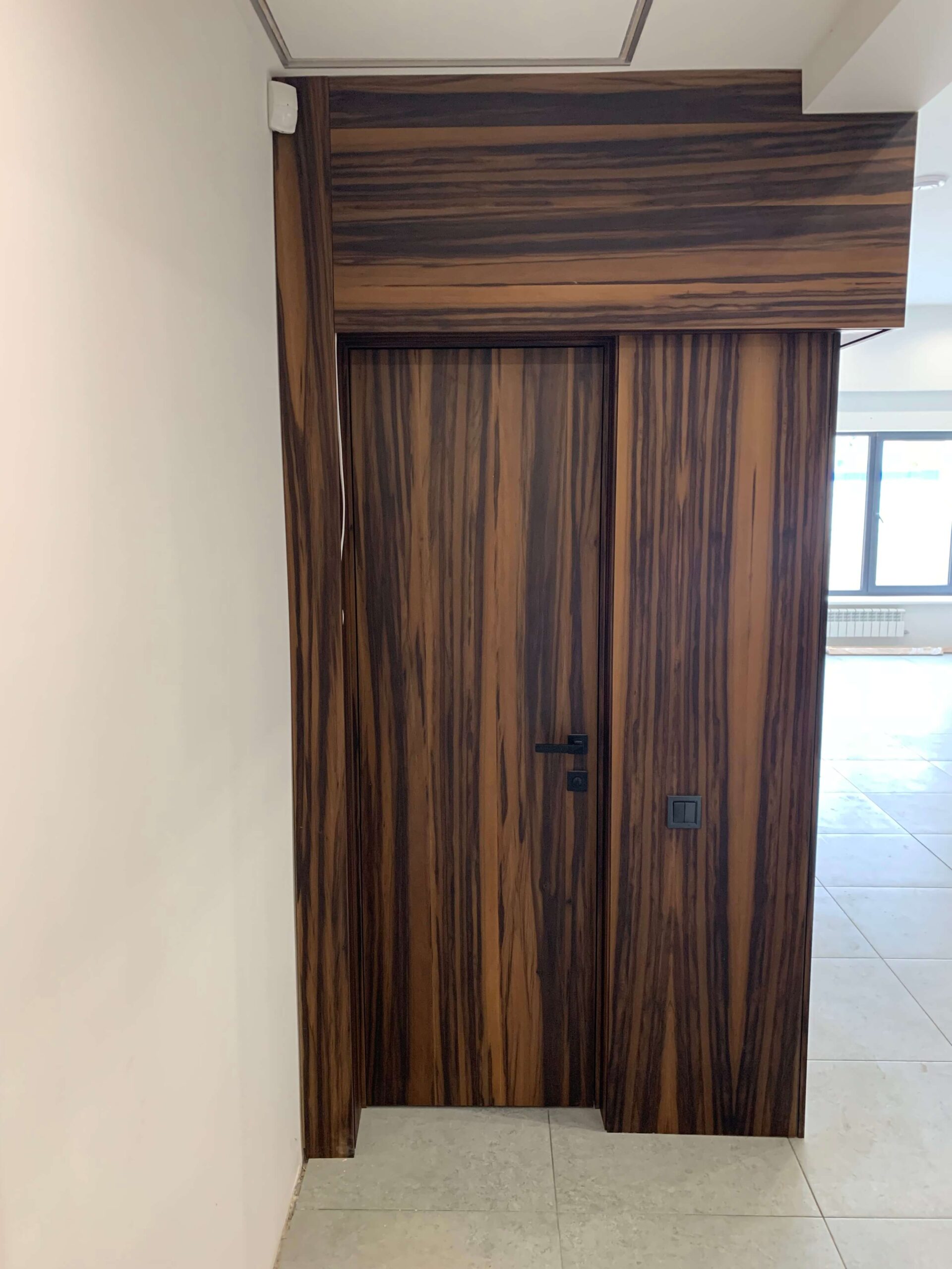 ПопереднійОригінальне поєднання стінових панелей та дверей ексклюзивним струганим шпоном.