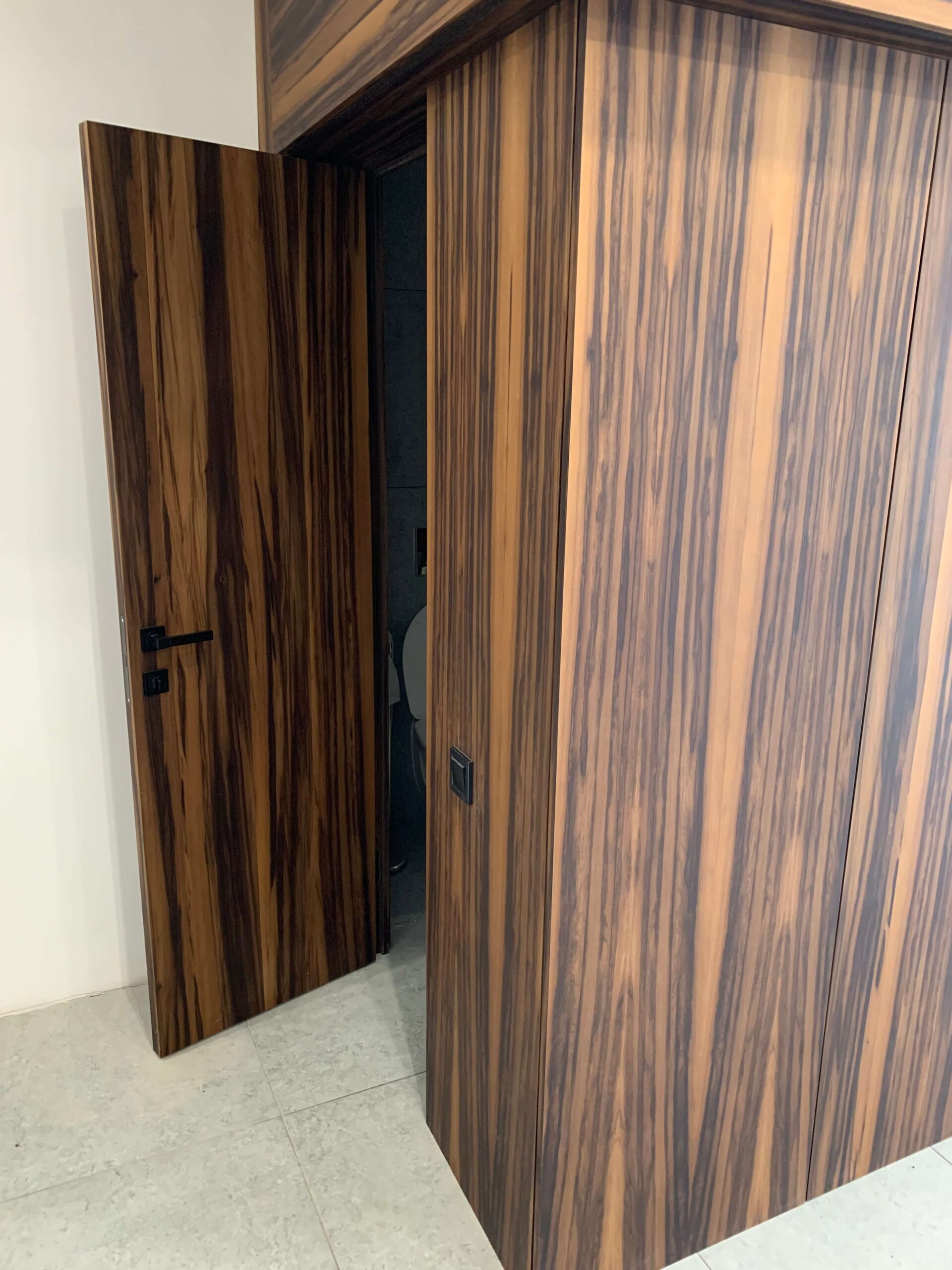 Оригінальне поєднання стінових панелей та дверей ексклюзивним струганим шпоном.