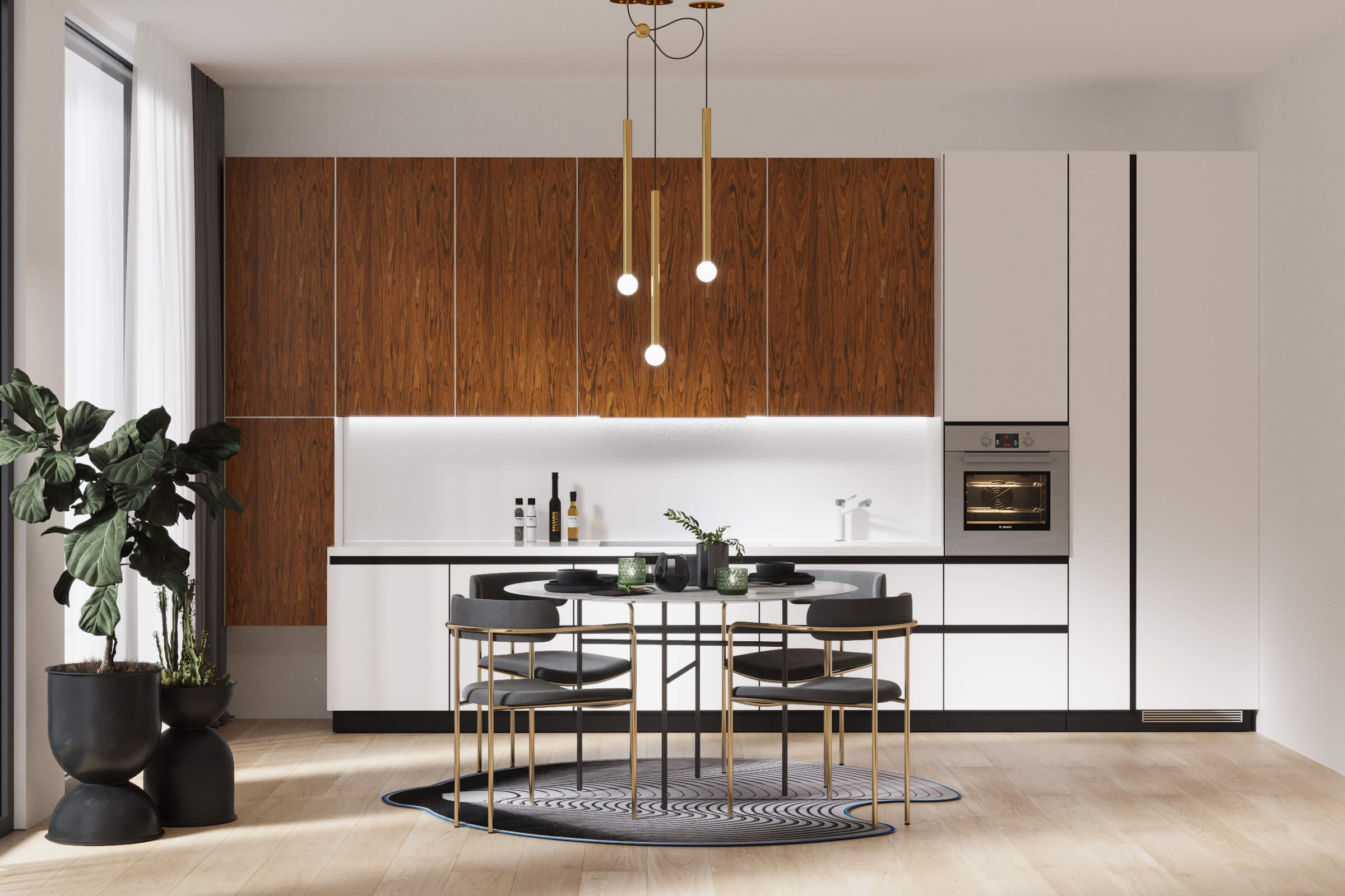 Створи вийняткову красу посеред буднів! Завдяки динаміці ліній ми передаємо неповторну красу натуральних фасадів створених із шпону файн-лайн ПАЛІСАНДР САНТОС. Живий матеріал модифікованого шпону від Classic Veneer та чисті лінії створюють настрій всього інтер’єру.