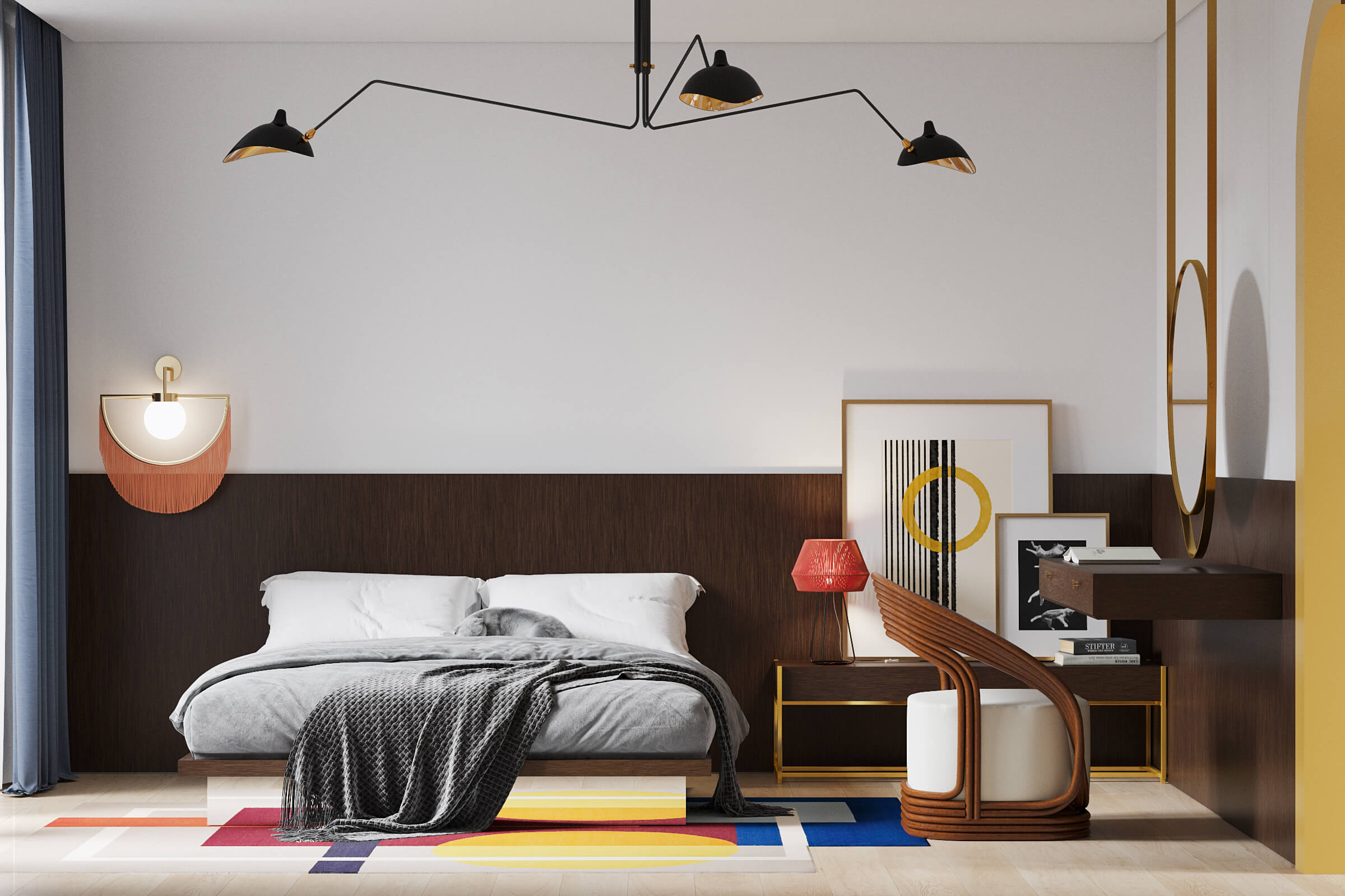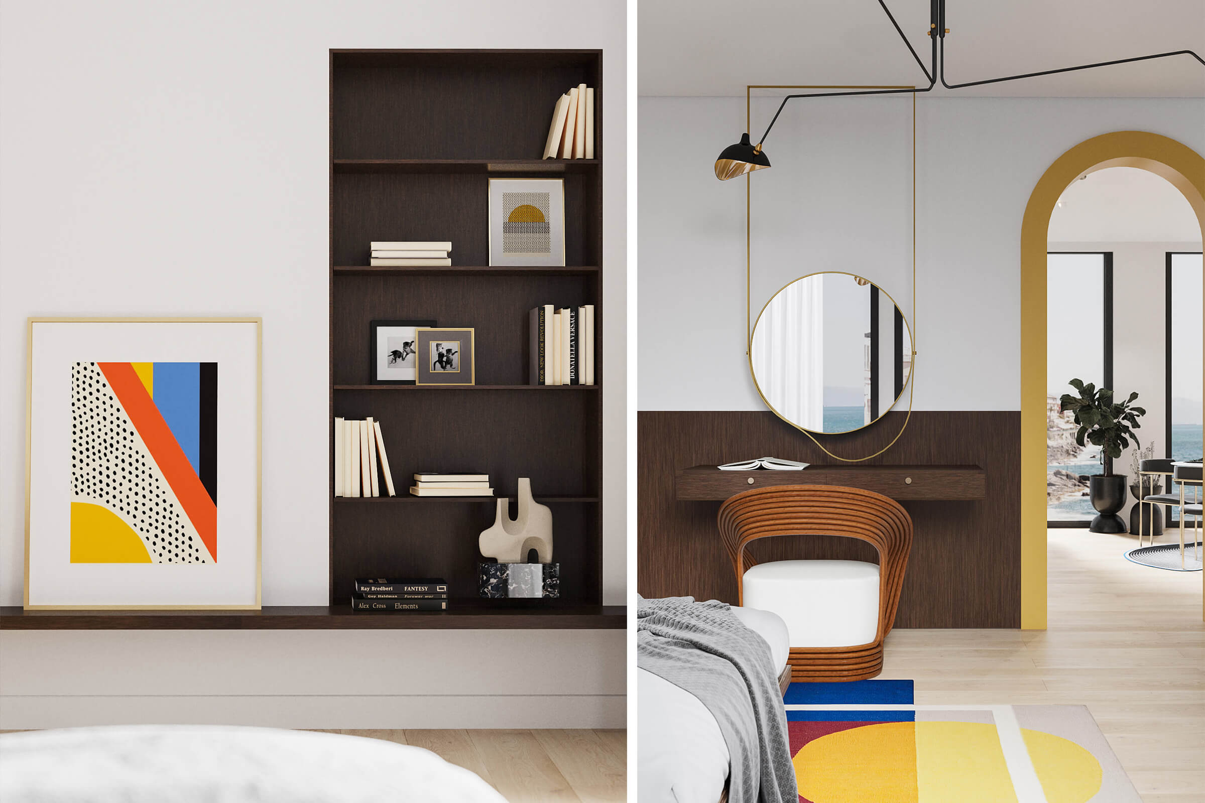 ПопереднійКожна деталь доповнює одна одну та створює цілісність інтер’єру. Завдяки поєднанню шпонованих текстур, форм та кольору спальня виділяється гармонією деталей.