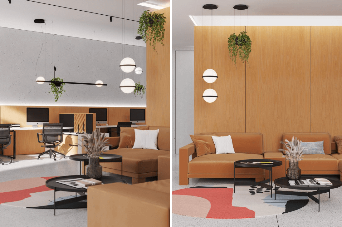 У даному проекті природний відтінок шпону ЧЕРЕШНЯ АМЕРИКАНСЬКА надає офісу ергономічності. Адже у таких приміщеннях справді зручно створювати і працювати в команді із задоволенням!