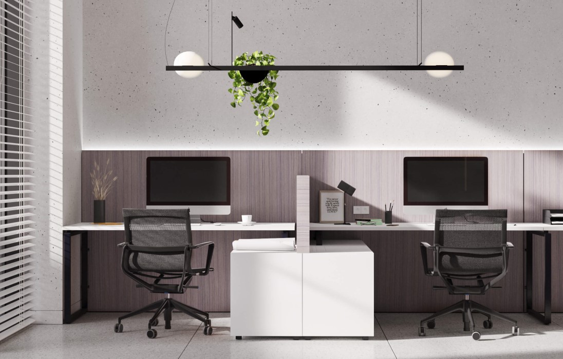 У даному проекті природний відтінок шпону ДУБ ПАСТЕЛЬНИЙ надає офісу ергономічності. Адже у таких приміщеннях справді зручно створювати і працювати в команді із задоволенням!