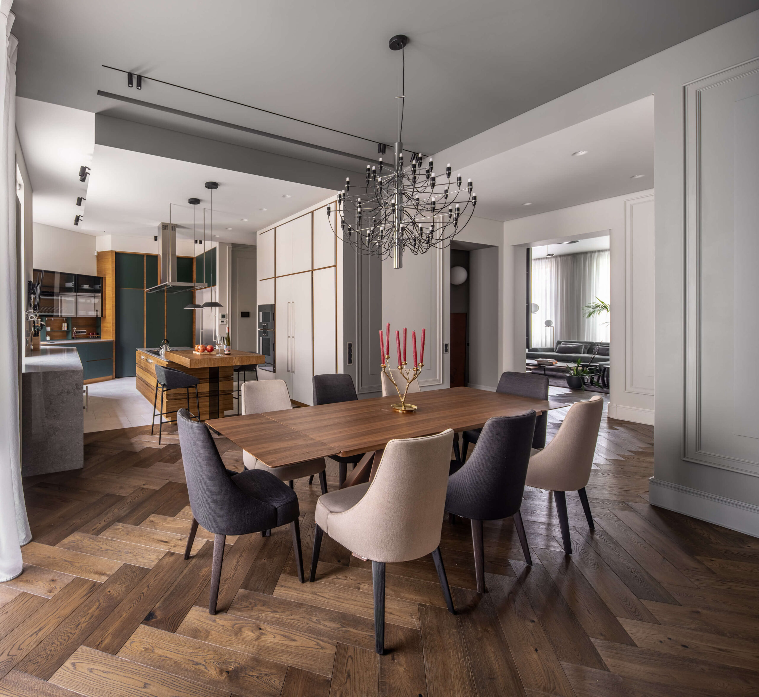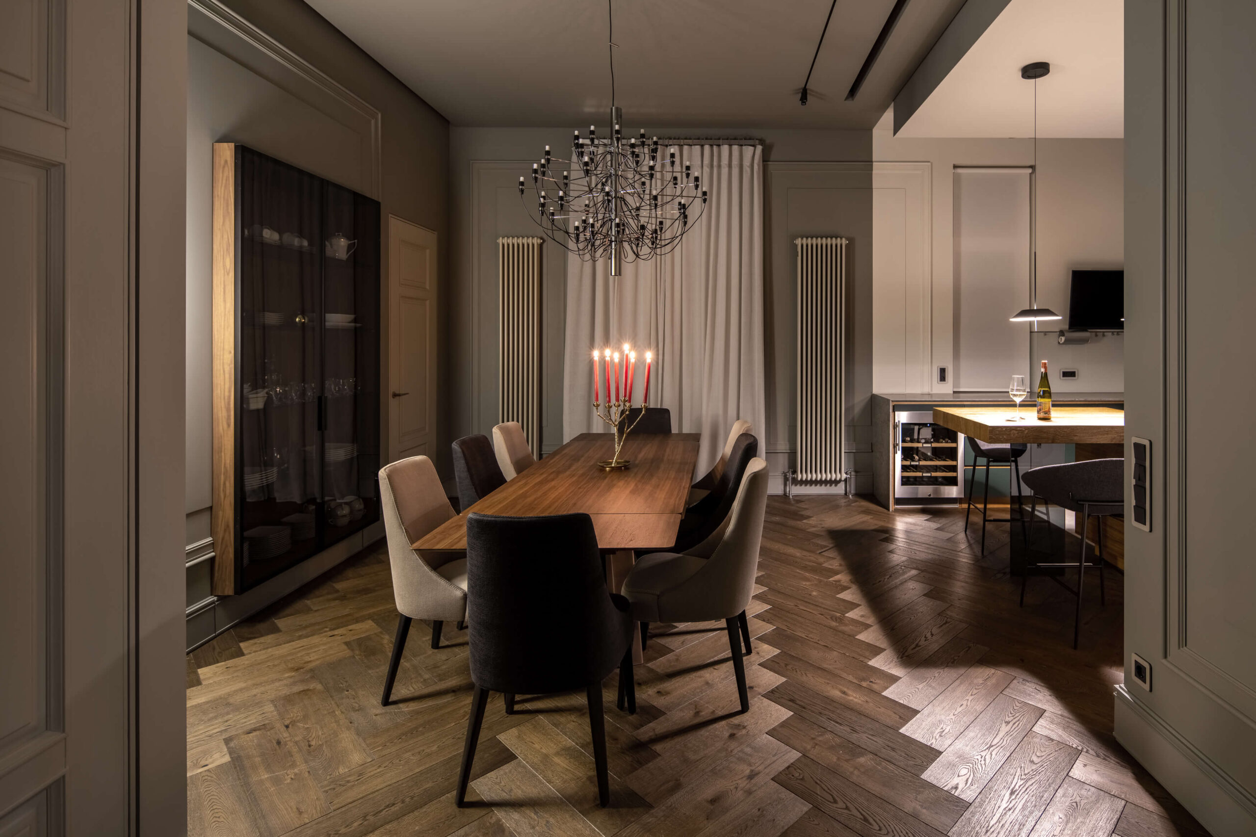 ПопереднійРеалізований проєкт від студії дизайну та архітектури Replus bureau, в якому поєднали класичні форми з сучасним технологічним наповненням. Виняткова краса струганого шпону ДУБ ТЕРМОВАНИЙ (Oak smoked), передає відмінне втілення обіднього столу для справжньої кухні.