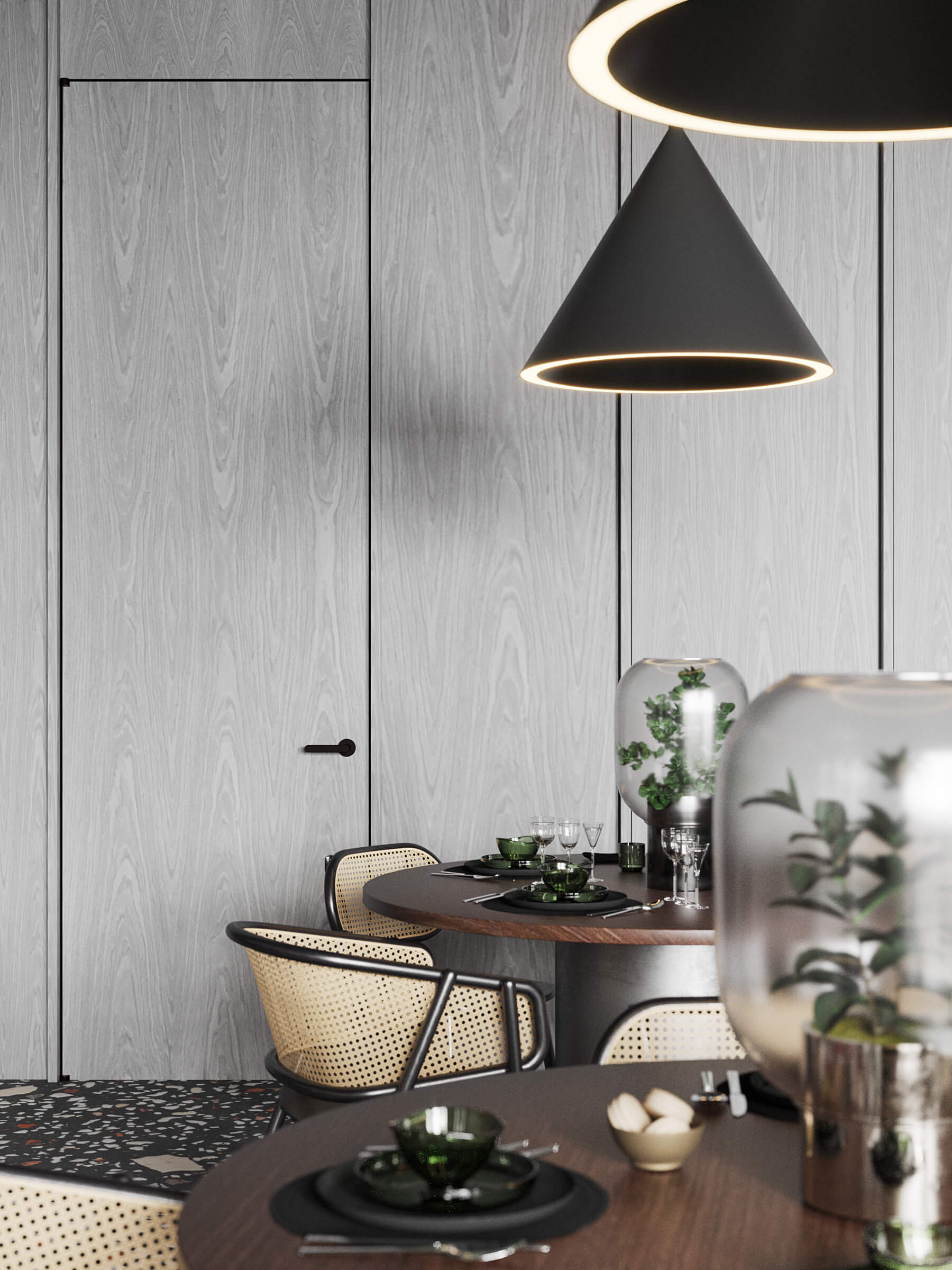 ПопереднійПроект з красивим поєднанням шпону ДУБ ВІНТЕР на дверях та стінових панелях, що надихає на особливо теплі відчуття та передають по-справжньому затишну і теплу атмосферу кафе.