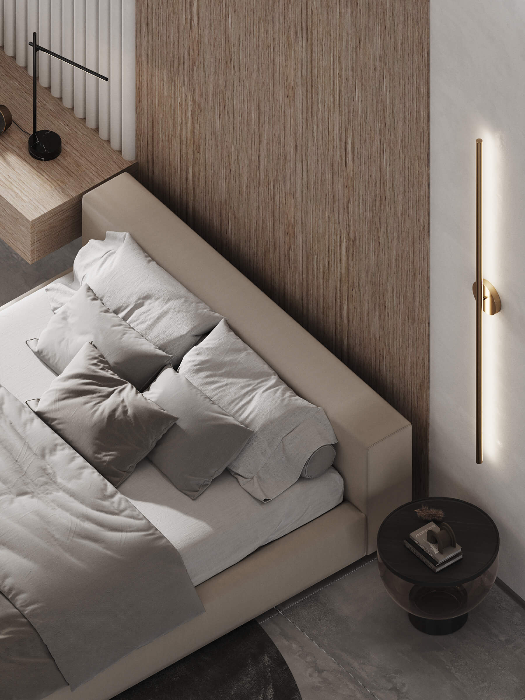 ПопереднійНіжний дизайн поверхонь та меблів в поєднанні з шпонованими елементами надають простору атмосферу легкості, релаксу та налаштовують на відпочинок. Структура та колір модифікованого шпону ГОРІХ ФОГІЯ додає бажаного ефекту особливої розкоші у простоті спальні.